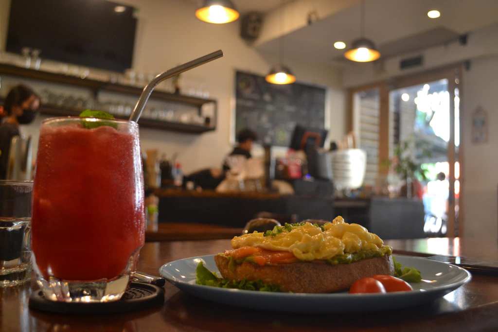 The next morning, I woke up early and searched online for a top-rated coffee shop for breakfast. I found one that looked promising and decided to walk there, soaking in the morning breeze. As I strolled through the city, I saw many people exercising in the park, which was a lovely sight. I arrived at a charming boutique café where both the breakfast and the coffee were exceptional.