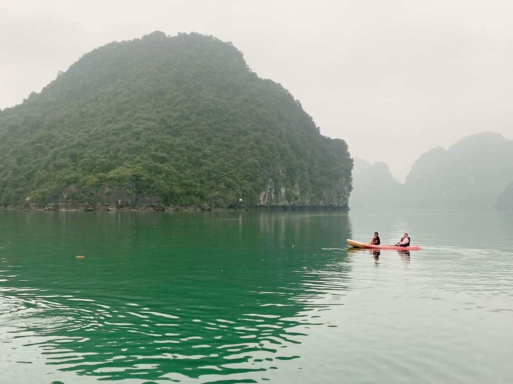 Onboard the cruise, I met some amazing people, including a friendly couple from Australia, Stuart and Tina. We instantly clicked and became adventure buddies. Together, we explored the hidden coves and emerald waters of Ha Long Bay by kayak. Paddling past the giant limestone cliffs felt like being in another world. We shared stories and laughs, and even discovered a secret beach! I even gravitated towards the Stellar of the Seas’ swimming pool, a perfect spot to cool off and soak in the incredible scenery.