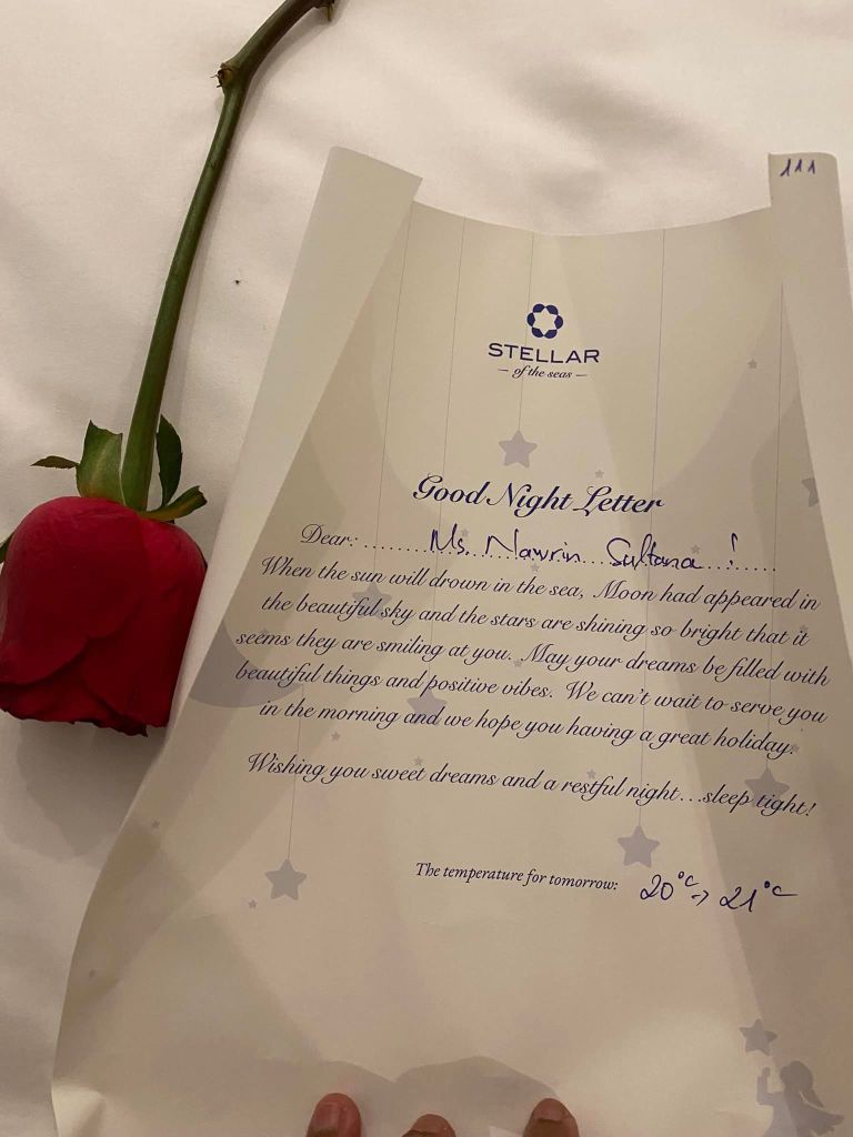 Stepping onto the Stellar of the Seas cruise ship was like entering another world. The honking traffic was replaced by the calming sound of waves lapping against the hull. The crew’s warm smiles were inviting, and my room was amazing – a comfy haven with a stunning balcony view of the bay.